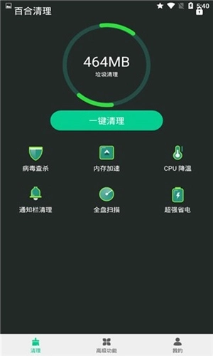 百合清理,通过清理内存运行垃圾,释放更多内存空间,电影通通不卡了