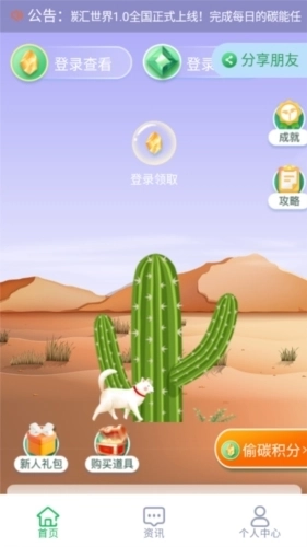 碳汇世界是碳汇行大数据重庆有限公司专为打造低碳生活而开发的一款生活服务软件,用户可以在这里看到最新的低碳相关的资讯,让你能够对于低碳生活有更多的了解,同时用户也能一起加入到减少碳排放的行动中,从绿色出行开始,为社会创造价值,让环境变得更加美丽!同时用户还能去完成各种任务来获取积分,丰富的奖励等你来获取哦,想了解更多的小伙伴就赶快体验吧!