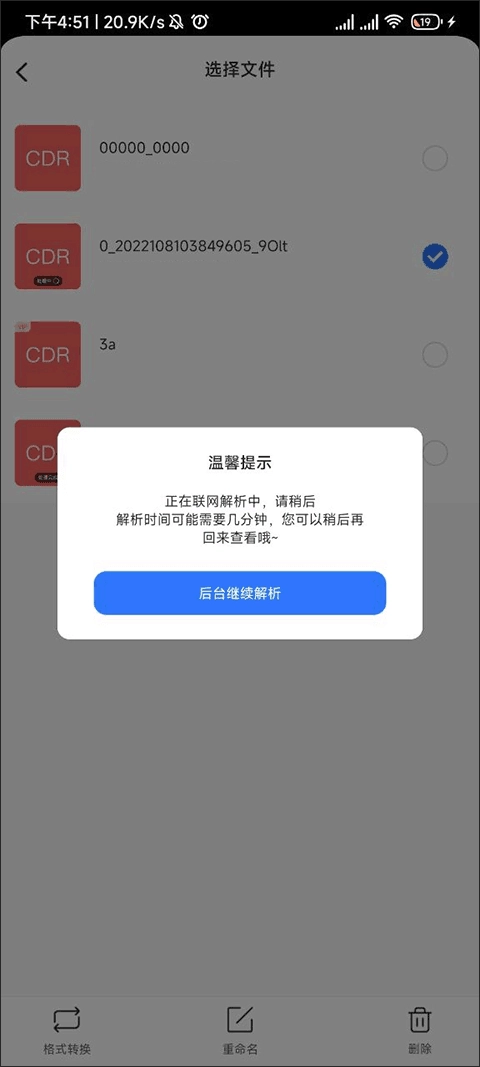 此时界面会自动弹出解析提示框,待文件栏显示处理完毕,即表示转换操作已顺利完成。