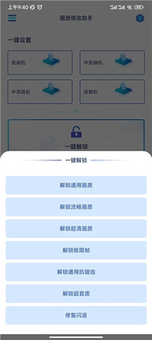 3、你还可以通过一键解锁你想要的画质,或是一键还原等,甚至是针对你的需求进行一键修改;