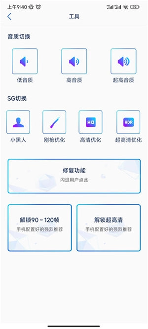 7、在这里你还可以对音质、SG等进行切换,能够解锁超高清、120帧画质。