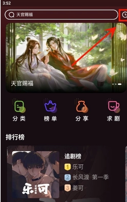 3、进入到软件首页,如图所示。这里可以查看分类,榜单,可以实时分享,或者直接搜索自己喜欢的作品。