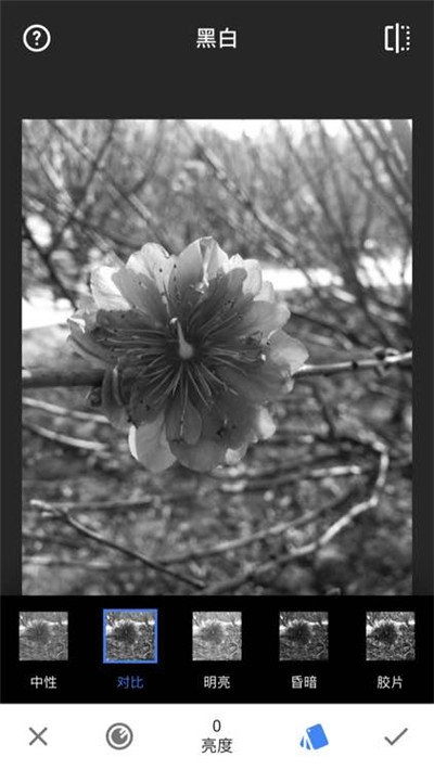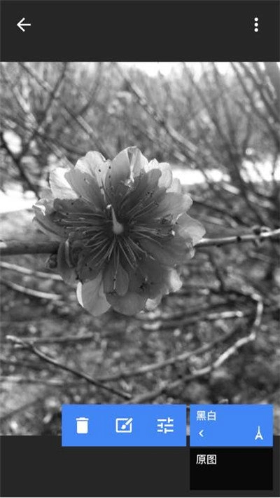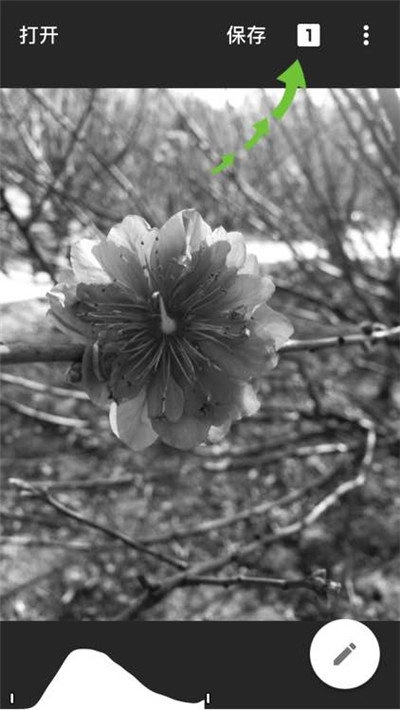在手机的右上角,你能看到一个像“1”一样的数字,点击它。之后会弹出“黑白”和“原图”两个选项,再点击“黑白”就可以了。