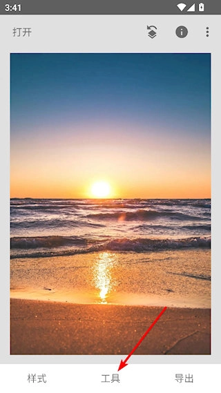 1、在Snapseed中打开需要处理的图片后,点击下方的工具;
