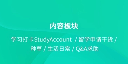 在内容部分,学习打卡学习Account/留学申请干货/种草/日常生活/QA求助!