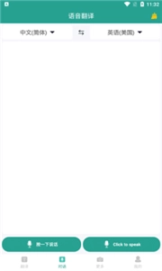 3、点击底部工具栏的麦克风按钮,能进入语音翻译功能。来输入语音,等待系统的翻译吧。