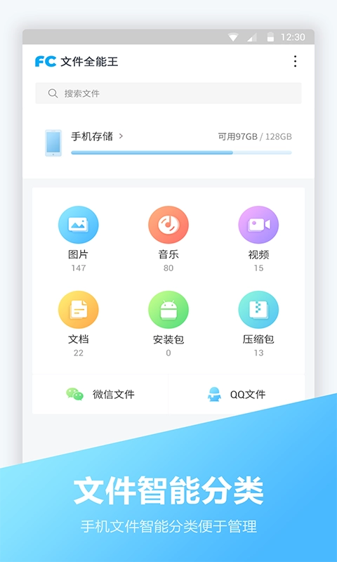 文件全能王最新版是一款能支持不同格式文件管理功能的软件,能够保护用户隐私并实现手机缓存清理,满足用户不同场景使用需求,支持密码设置以及加密等功能,能提供不同文件的格式转换,而且提供多种管理方式可以使用,感兴趣的朋友快来12365网文件全能王最新版吧!