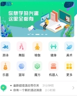 1、比如游泳、美术、乐器还有瑜伽等课程类型,汇集了多种课程类型;