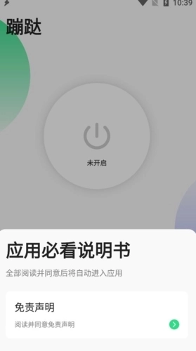 1.打开[蹦跶]后点击主页圆形开关按钮会进入无障碍设置页面