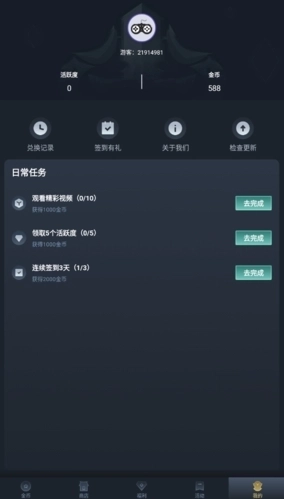 2.每天签到还有积分可以领取,一定的积分能够兑换各种游戏皮肤;
