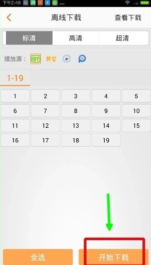 进入离线页面后,挑选你需要的篇章,点击底部的“开始”按钮,就能完成操作。