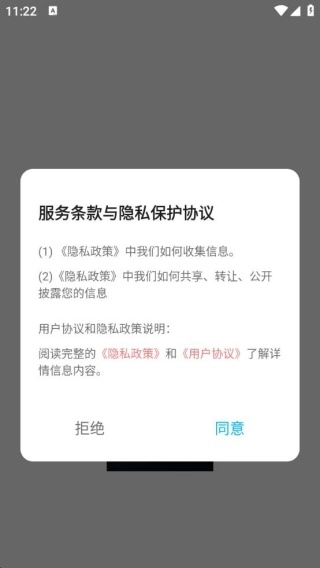 1、安装软件并进入后,会弹出服务条款与隐私保护协议,点击同意即可。