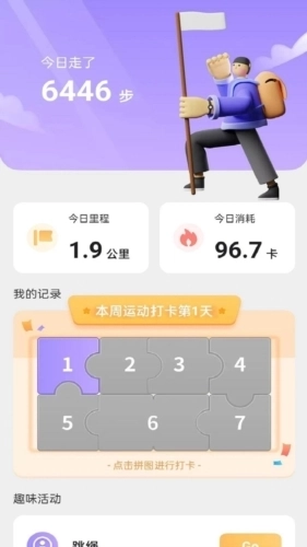 1、运动打卡,每日步数和消耗卡路里计算,规律运动