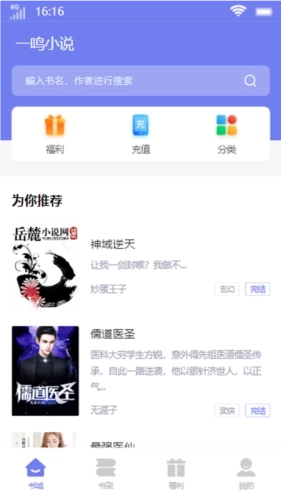 1、书架根据书的类型分类,搜索小说更加方便。