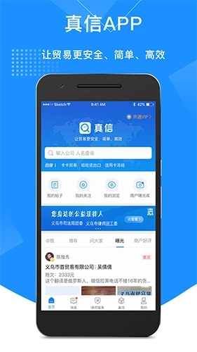 真信是一款由义乌市微讯信息科技有限公司专为商户开发的社交手机软件,用户可以通过该软件来进行实名认证,用户还可以随时随地去查看自己的信誉值。在该软件中,用户之间可以相互进行交流沟通,软件中还为用户提供了阅后即焚的功能。以软件为依托,联合各大资深律师,提供事前风险预防和事后争议处置等全方位服务,使法律服务更高效,低成本,可追溯!