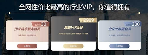 当然,既然两者都需要,那2999元的高级VIP会员就特别适合你了——除了能获取招采信息,企业大数据相关的功能你也都能全面了解和使用。