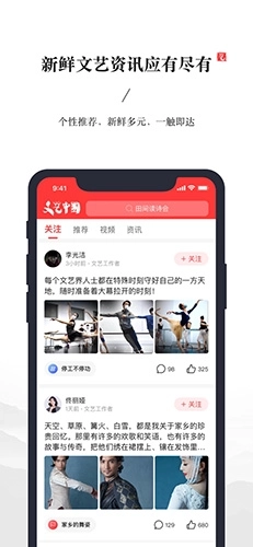 4、这里聚集了许多文艺爱好者,每天都会分享大量优质的文艺资讯、视频等内容,覆盖多个领域,大家可以随时互动交流,也能自己创作和分享。