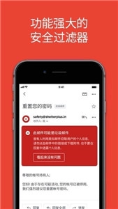 • 自动阻止超过 99.9% 的垃圾邮件、网络钓鱼、恶意软件和危险链接到达您的收件箱