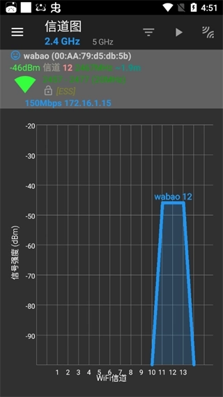 1、WiFi频段切换:点击标题栏轻松切换2.4GHz和5GHz频段。