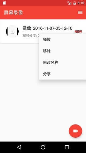 通知栏快捷方式显示录制状态。