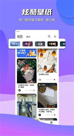 一键操作就能把动态壁纸直接保存到本地,还能设置成桌面动态壁纸,锁屏时也能呈现动态效果。壁纸界面简洁清爽,操作起来简单方便。
