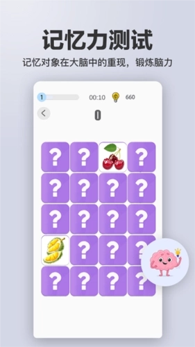 3,难度升级:测试题目逐渐变复杂,从简单到较难的内容,让用户逐步提升智力水平,不断挑战自我。