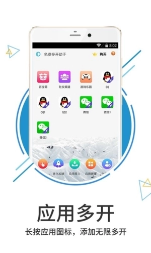 应用多开无限制——双开助手的应用多开分身功能,更稳定的微信多开宝,完美支持微信多开、QQ多开、派派多开、淘宝多开、抖音多开、游戏多开等所有应用无限多开分身,依托独立内存管理机制,手机无限多开不卡顿。