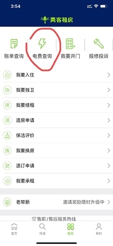 1.首先点击服务,然后点击电费查询。