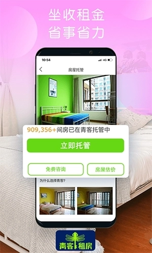 青客租房是一款由上海青客机器人科技有限公司开发的公寓租房手机软件,该软件中的房源信息都是由房东亲自发布的,是非常安全可靠的。用户们可以放心在该软件中找房子,用户们还可以在线预订租房,为用户提供了非常优质的住房、租房的体验。该软件是用户们在地铁边、租得起、有管家的青年公寓,立志为1000万青年人才解决住房问题。