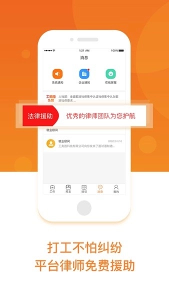 让找工作像玩一样,上班享受特权,少了工资平台代付,真正无忧找工作。推荐朋友上班还能获得佣金,打工不再担心纠纷,平台律师免费援助。工务园平台严格监管,确保发布岗位的有效性。提供海量岗位信息及大量企业,用户可自定义求职需求,平台智能匹配适合岗位。分享岗位,帮助朋友找到工作,分享者不仅在帮助朋友的同时还可获得平台的奖励金。