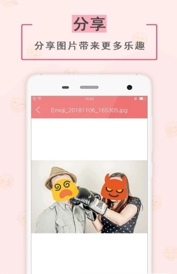 *大量有趣搞怪的emoji贴纸表情,用户可以随意选择并贴在照片上,增加趣味性和个性化。