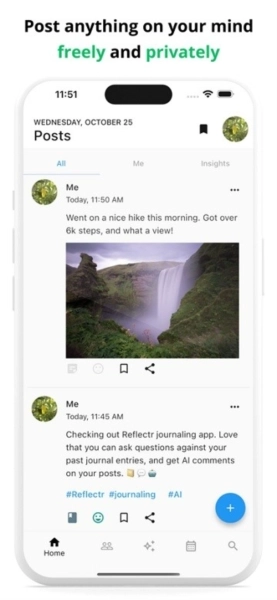 Reflectr,一款赋予您日记式生活记录体验的应用,是您的私密数字天地,随时随地在线保存和编辑日记,它智能分析文字,揭示您的心情变化,让记录变得井井有条。不要错过这个机会,现在就Reflectr软件加入,开始您的情感探索之旅!