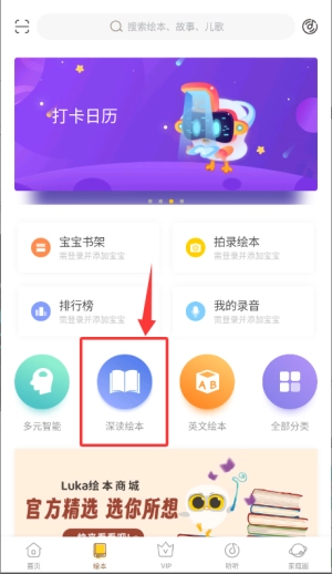 在主界面下方的导航栏里找到“绘本”功能并点击,即可进入绘本资源页面。