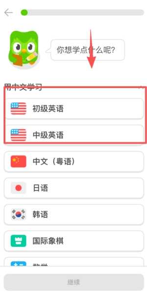安装应用程序并启动后,按照界面上的引导步骤,挑选一门自己感兴趣的目标语言(像英语、日语这类都可以),以此作为开启学习的初始选择。