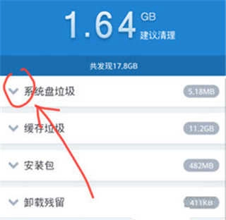 4、点击“系统盘垃圾”选项,即可查看系统运行过程中生成的缓存文件。