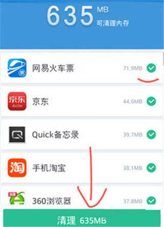 5、进入明细页面后,能看到360清理大师已默认勾选了需要清理的文件,而未打勾的文件则不会被清理。