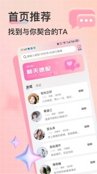 5、附近有缘人:地理位置推荐,帮你邂逅身边的缘分。