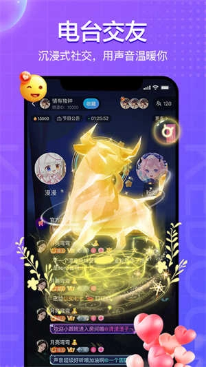 支持游戏组队开黑、远程隔空对唱、趣味娱乐八卦以及专业游戏陪玩等多样化玩法。