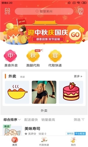 美食外卖,莱州市各个外卖商家的信息快速的查看,在线预约美食并下单。