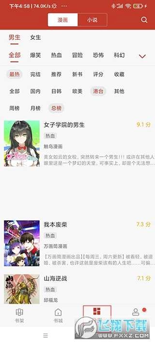 首页开设了男生频道和女生频道,以此满足不同性别用户的阅读需求。