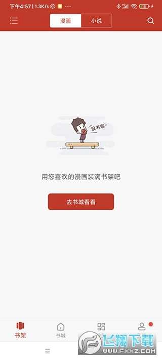 1、安装并打开36漫画手机版后,首页为书架界面,可添加你想收藏的漫画作品;