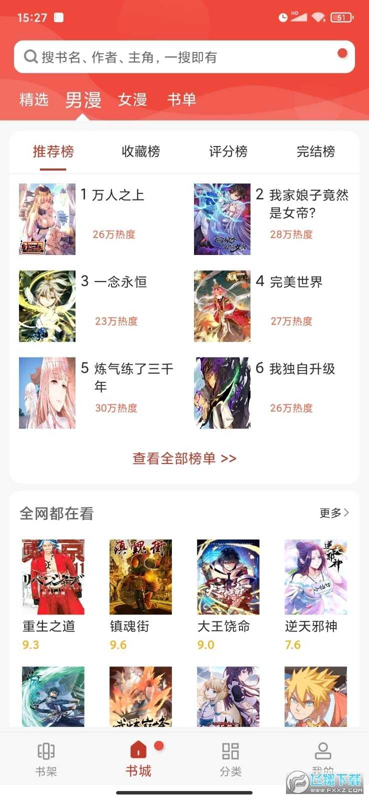 4、进入书城页面,这里有各类热门推荐内容,任你探索;