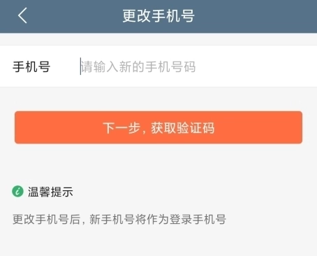 4、进入修改手机号的页面后,填写新的手机号并输入验证码,就能完成旧手机号的解绑操作了。