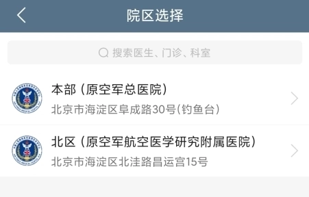 3、选择要挂号的院区;