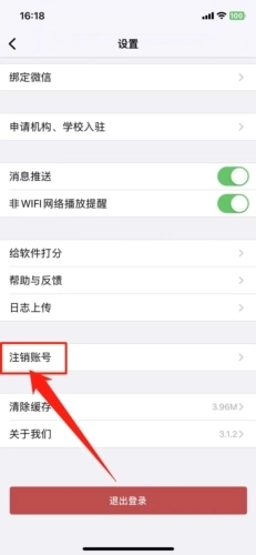3、之后找到设置页面中的“注销账号”,点击进入;