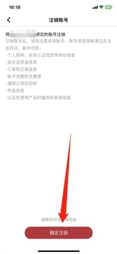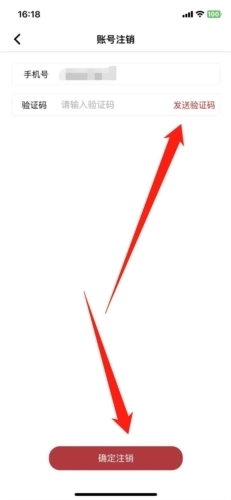 5、最后通过注册手机号获取验证码并输入,再次点击下方“确定注销”,这样我们就能将账号成功注销了。