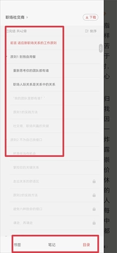 4、接下来就能看到全书所有的章节目录了,另外你也可以查看自己添加的书签和笔记目录