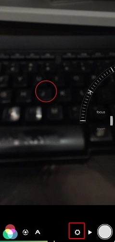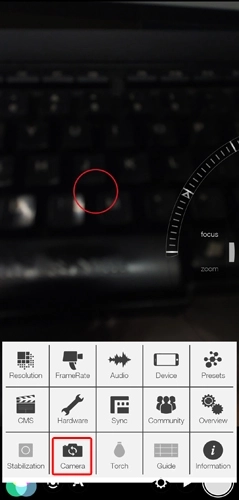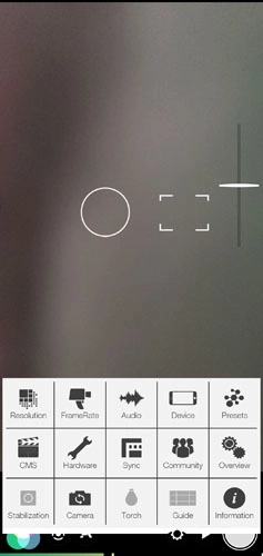 1、该软件中最左边的功能分别是分辨率和暗度调整,用户可以根据需求进行调整,接下来就是最右边的拍摄按钮,接下来最重要的就是下边的设置按钮了。
