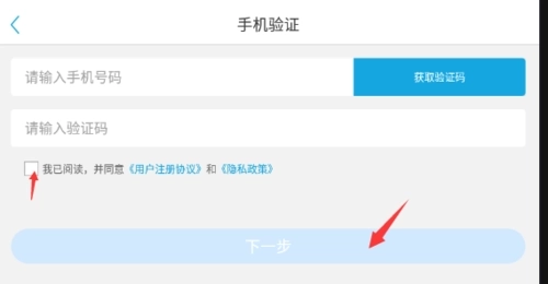 3、在注册界面输入当前使用的手机号与验证码,勾选阅读注意事项,即可完成注册。