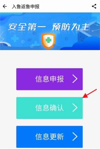 进入入鲁返鲁申报,点击下方的信息确认进入